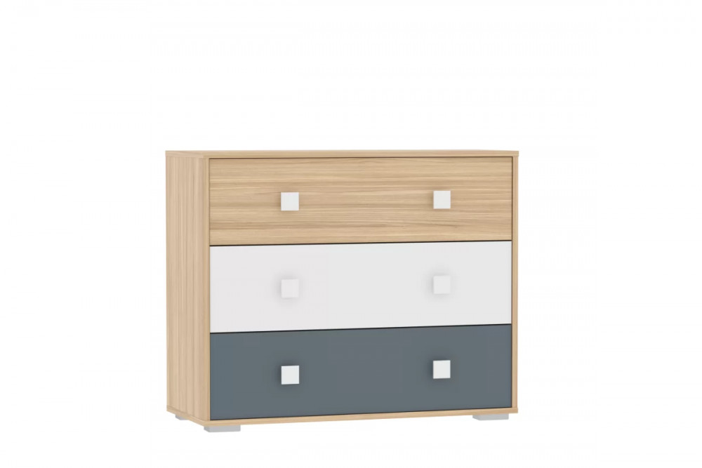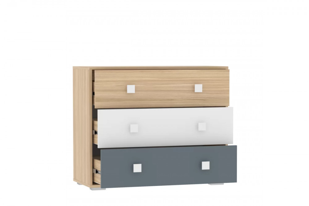 Ручки лаконичного дизайна белого цвета придают комоду современный вид. Три больших выдвижных ящика со встроенной перегородкой гарантируют достаточно места для хранения вещей, а благодаря регулируемым опорам комоду не страшны никакие неровности. Объедините комод со шкафом из одноименной серии, чтобы создать особенно гармоничную атмосферу!