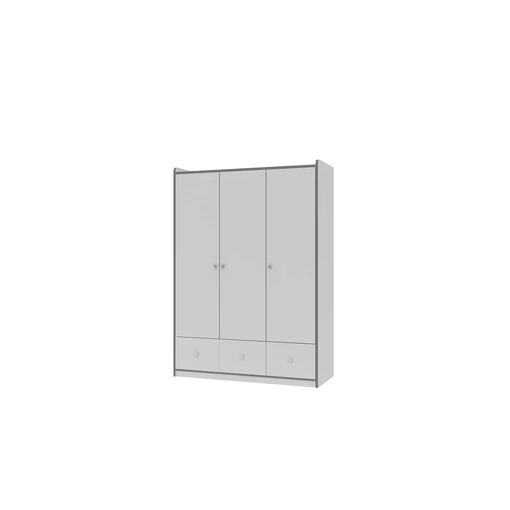 Трехстворчатый шкаф "Дельта-9.1 Сильвер" предназначен для одежды и других вещей ребенка. Верхняя часть шкафа разделена на 2 отделения. Большее отделение комплектуется штангой и антресольной полкой, меньшее - полками. Снизу шкаф оборудован тремя выдвижными ящиками.