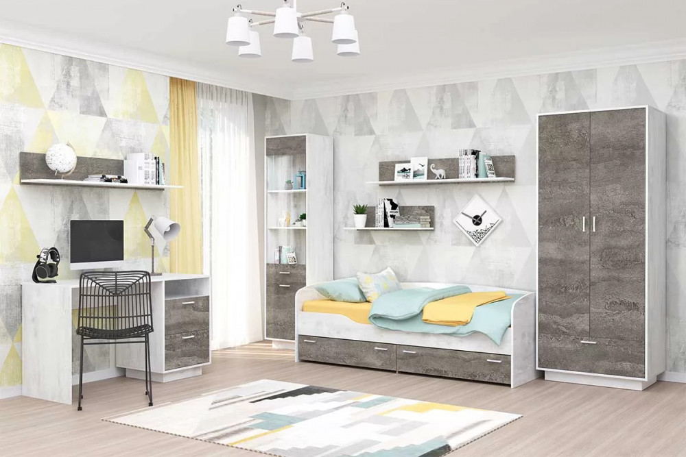 Кровать Эго арт. 016, 800*1900 мм, бетон светлый/камень темный 1 шт