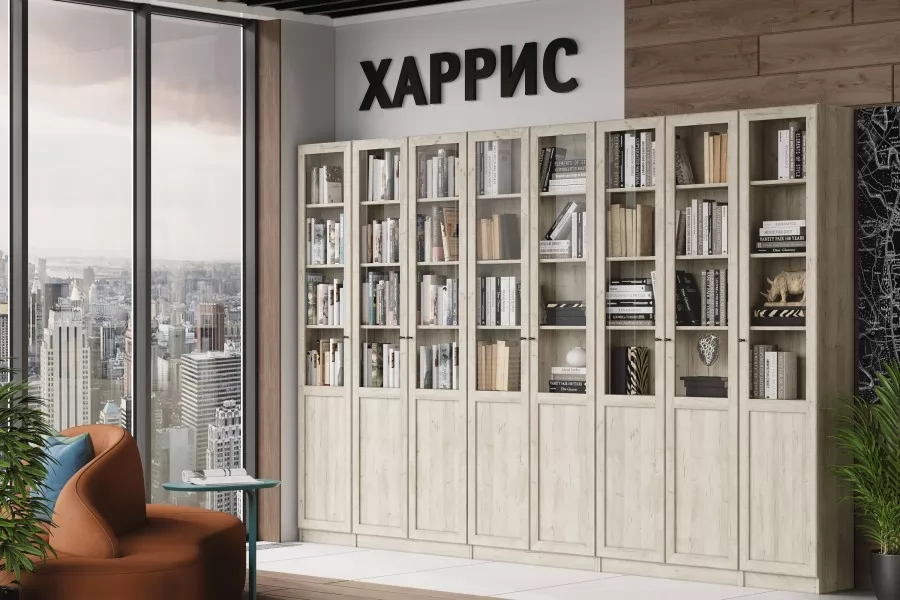 Книжные шкафы высотой 2107 мм помогут правильно организовать хранение книг и документов. Стеклянный фасад перенавешивается, это облегчит задачу при создании компоновки из шкафов в зависимости от планировки. За стеклянным фасадом из закаленного прозрачного стекла регулируемые по высоте полки из ЛДСП, что позволит разместить литературу различного формата. Книжные шкафы обязательно крепить к стене!