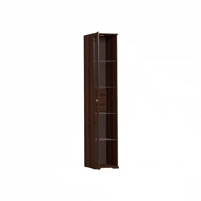 Витрина в гостиной означает, что хозяева любят и ценят семейные традиции. В ней можно выставлять не только посуду, но и фотографии, совместно приобретенные сувениры, красивые интерьерные мелочи или детские поделки. На стеклянных полках толщиной 4 мм с еврокромкой можно разместить любые вещи весом до 10 кг. Встроенная подсветка поможет создать необходимую атмосферу и создать акценты для внимания гостей. Она оснащена трансформатором и подключается к бытовой электросети 220 В. Благодаря переплету из тонкого профиля МДФ дверь не перенавешивается на другую сторону.