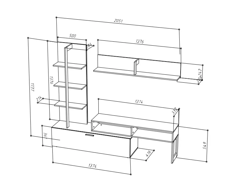 Размеры (Ш*Г*В):2051х416х1737 мм