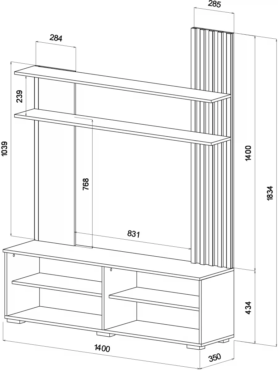 • Габариты 1400(Ш) х 350(Г) х 1834(В) мм.