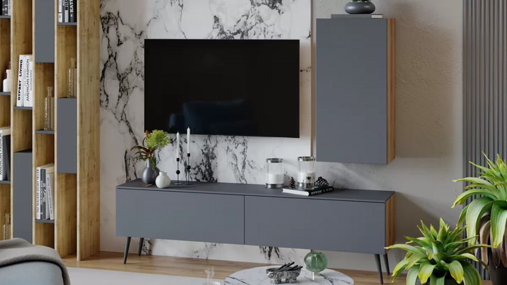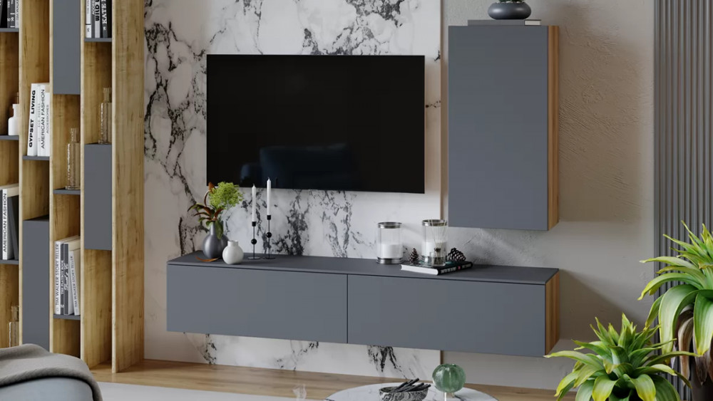 Модульная гостиная «Порто» Яблоня Беллуно, Графит софт в Ноябрьске