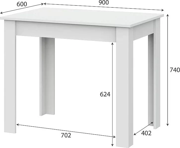 Размеры (мм):ширина - 900,глубина - 600,высота - 740.Материалы: ЛДСП.Цвет: белый.Технические характеристики:Нераскладной кухонный стол с прямоугольной столешницей.Имитация текстуры древесины.Рассчитан на 4 человек.Надежная столешница, устойчивая к воздействию внешней среды.Прочные полые опоры.Объем: 0,025 м3.Производство: Россия.Вес: 14 кг.