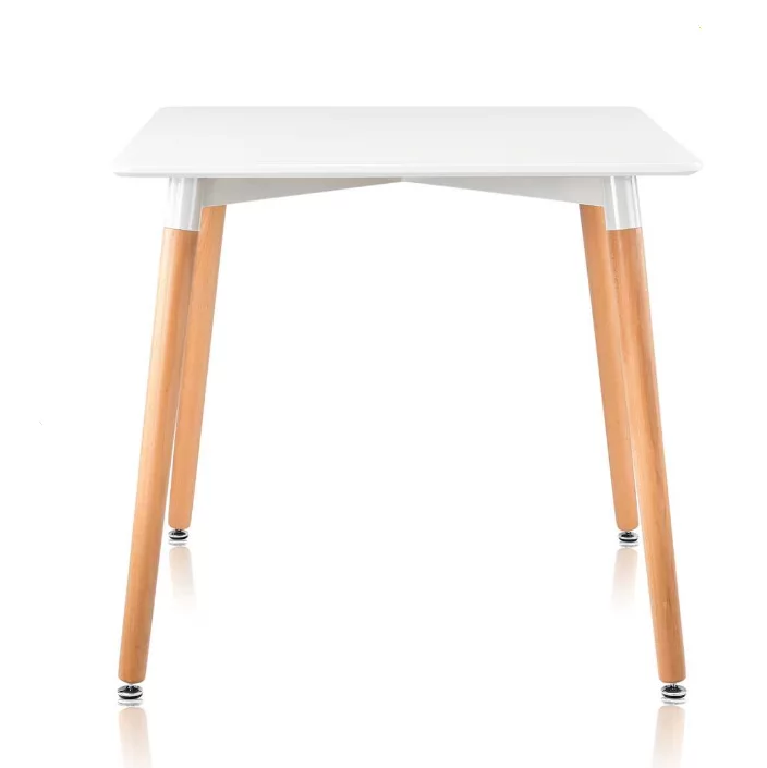 Стол в стилей Eames — настоящий хит скандинавского дизайна, уже несколько лет не теряющий своей популярности. Столешница выполнена из экологичного матового МДФ, по износостойкости и долговечности превосходящего натуральную древесину. Белый цвет столешницы привносит в пространство ощущение чистоты и свежести. Ножки из цельного массива светлого бука и геометрические металлические подпорки делают стол невероятно устойчивым и прочным. Благодаря натурального расцветке и округлой форме стол в стиле Eames DSW идеально впишется как в жилое помещение, так и в общественную зону кафе или ресторана, особенно хорошо подчеркнув интерьер в стиле минимализм или хай-тек.