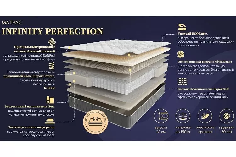Матрас INFINITY PERFECTION 900*2000мм (Эколатекс/пена/лен, ср. жесткий, h28см) в Ноябрьске
