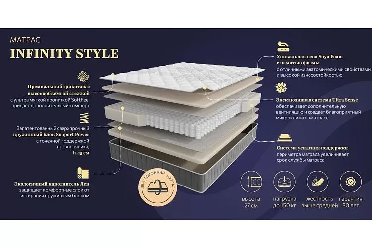 Матрас INFINITY STYLE 1200*2000мм (Пена/лен, жесткий, h 27см) в Ноябрьске