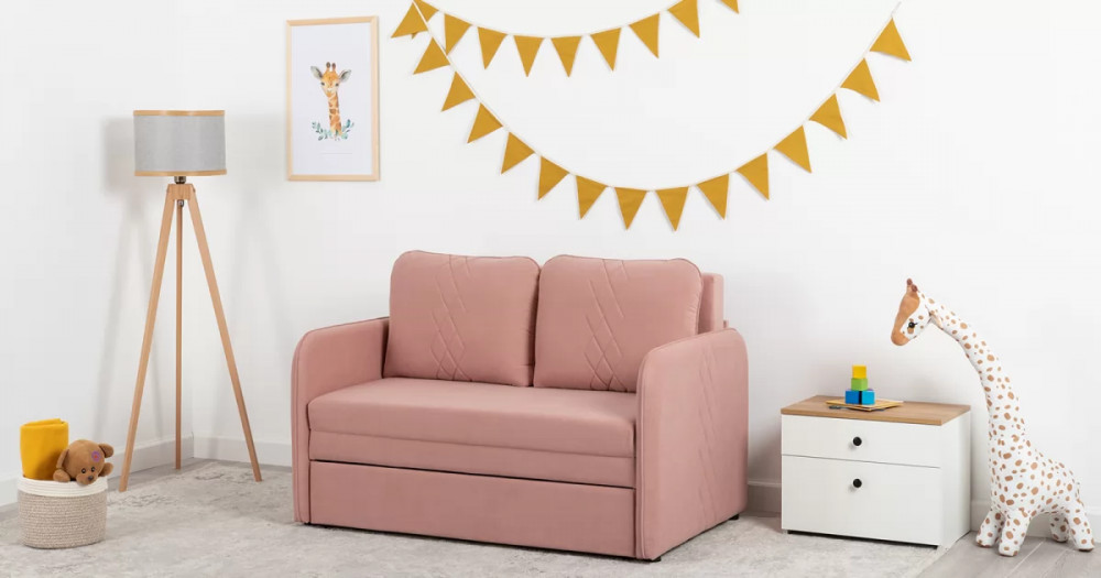 Стильный компактный диван для детской и гостиной. При своих скромных размерах он трансформируется в полноценное спальное место для детей и подростков. Лаконичный дизайн в виде декоративной отстрочки подчеркивает фактуру велюра, а небольшие размеры позволят разместить его в любом пространстве.