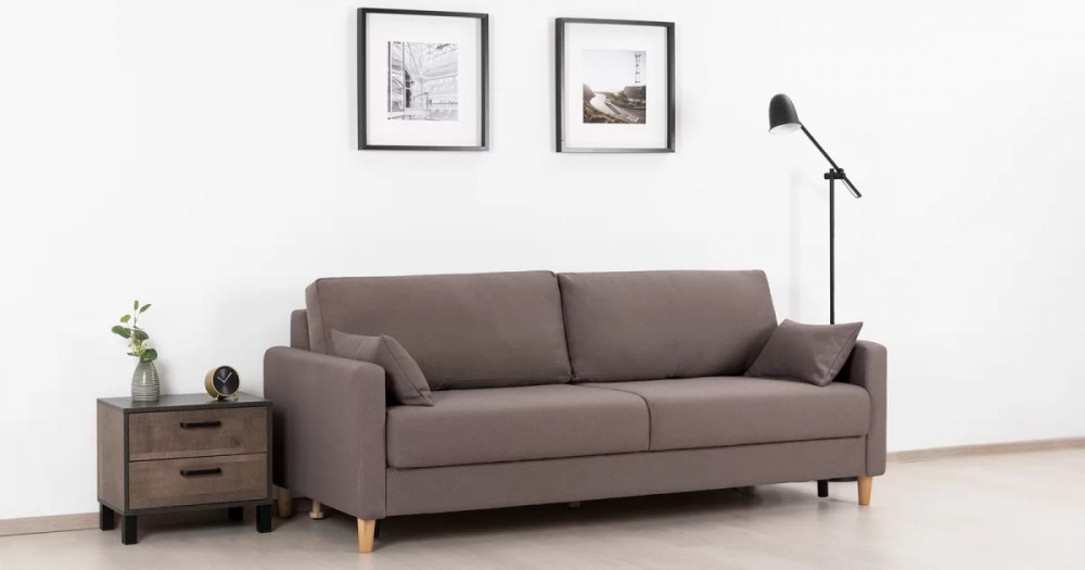 Дилан Диван-кровать арт. ТД 421Габаритысложенный (Д x Г х В, мм): 2170 x 960 x 880разложенный (Д x Г х В, мм): 2170 x 1370 x 620спальное место (Д x Ш, мм): 1910 x 1370высота посадки (мм): 460глубина сиденья (мм): 570высота спинки (мм): 420высота подлкотника от сиденья (мм): 160максимально допустимая нагрузка: 80 кг на одно посадочное место, 100 кг на одно спальное местоМеханизм трансформацииЕврокнижка с механизмом раскладки «тик-так»Бельевой ящикестьс перегородкой по центру (2 отделения)размер отделения (Д x Ш, мм):  786 x 688 x 120Материалыосновная ткань: Лаунж (шенилл) / Сага (рогожка)выполняется в тканях: Сага браун (бронзовый)каркас: фанера