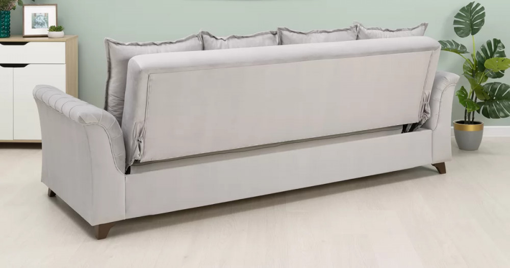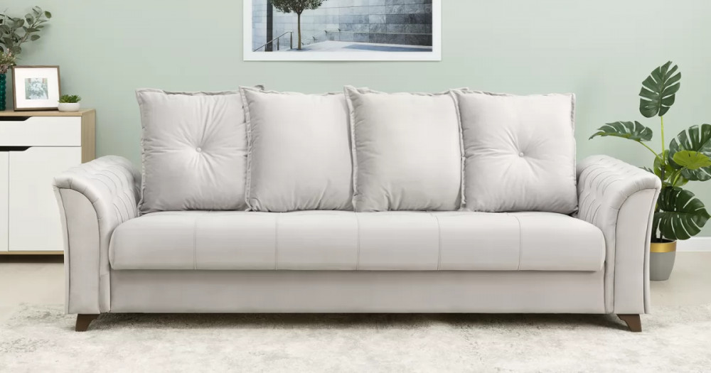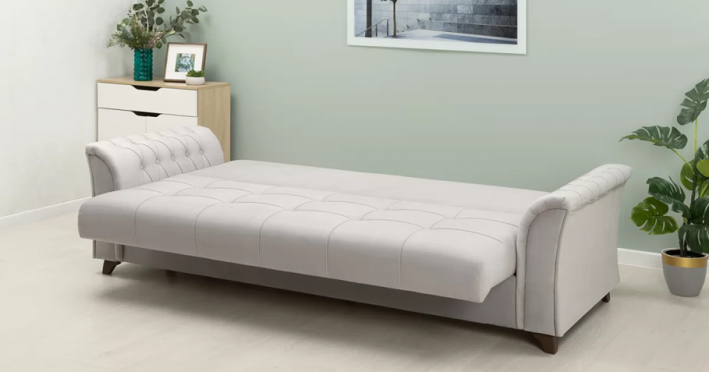 Габаритысложенный (Д x Г х В, мм): 2450 x 1060 x 890спальное место (Д x Ш, мм): 1950 x 1310высота посадки (мм): 460глубина сиденья (мм): 540максимально допустимая нагрузка: 80 кг на одно посадочное место, 100 кг на одно спальное местоМеханизм трансформации-Книжка с 0 стенойБельевой ящик-есть  перегородкой по центру (2 отделения)размер отделения (Д x Ш, мм): 890 x 840 x 200каркас: фанерадеревянный брус