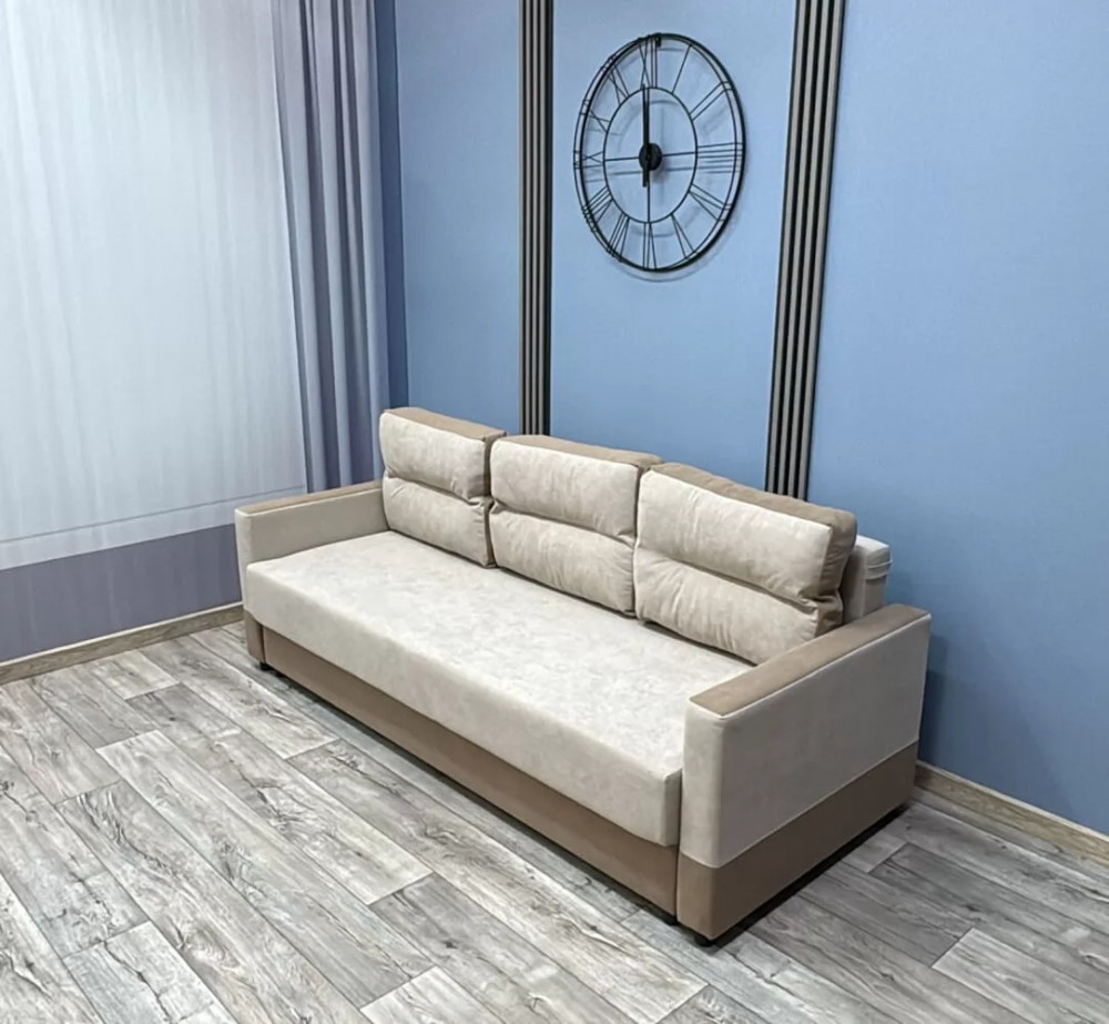 Простой в эксплуатации, надежный, качественный диван. Механизм трансформации «Пантограф» (тик-так) позволяет формировать ровное спальное место. Диван оснащен пристенной спинкой и вместительным коробом для спальных принадлежностей. Гармоничные сочетания тканей позволят оживить любой интерьер. Съемные подлокотники упрощают процесс транспортировки.