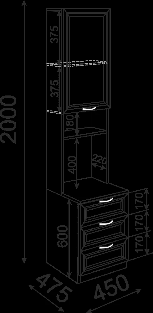 *Размеры (ВхШхГ), мм:2000х450х475 мм
