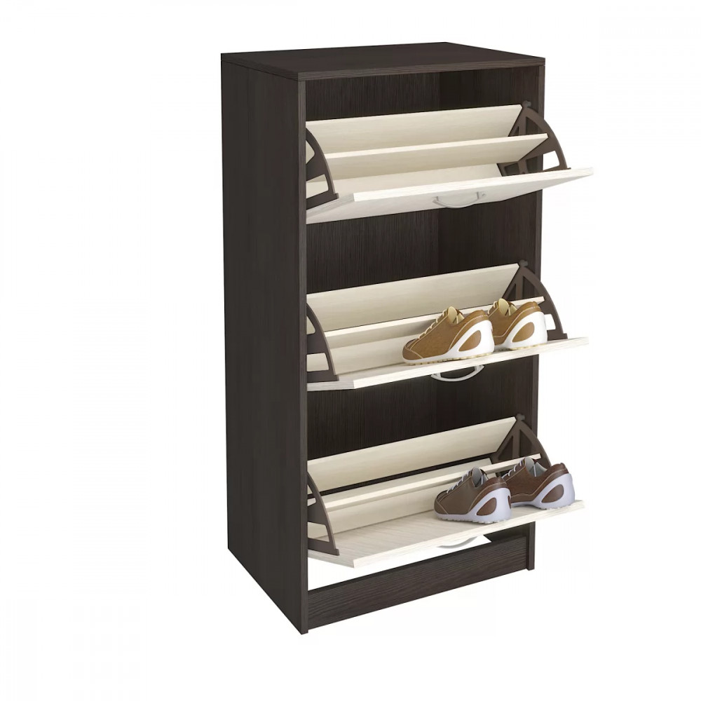 Компактная и функциональная тумба для обуви Вега отлично подойдёт для прихожей или гардеробной - Три отделения для обуви - Ручки пластик - Максимальный размер обуви 45 (RU)