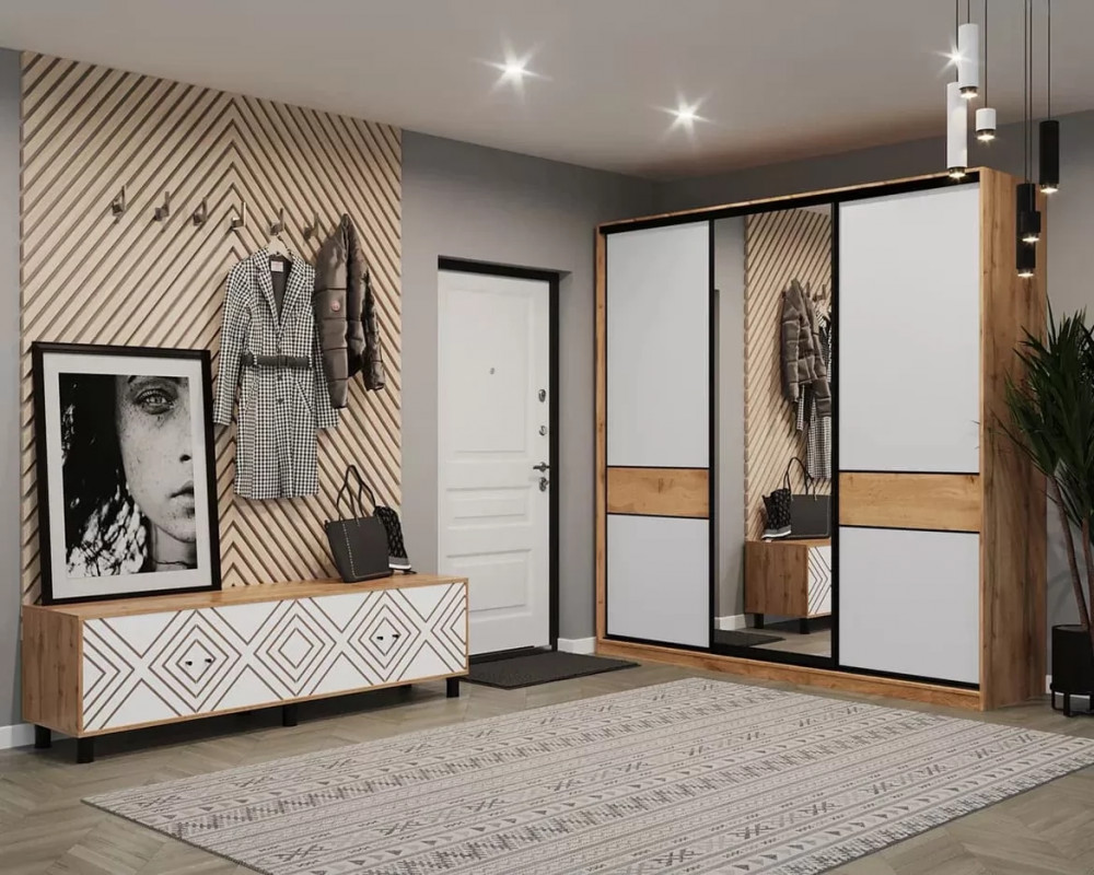 – Шкаф-купе выполнен из ЛДСП цвета Дуб Вотан с белым наполнение внутри (полки/перегородки), что позволяет быстро найти вещи и поддерживать чистоту!