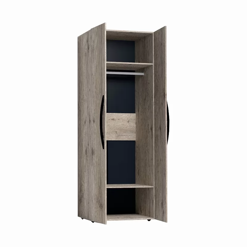 NATURE 54 Шкаф для одежды - классический шкаф для спальни. Фасады Стандарт с ручками, укутанными в экокожу. Шкаф комплектуется стационарной штангой длиной 757 мм, на которой можно разместить до 10 плечиков с верхней одеждой, а также двумя полками. Регулируемые опоры компенсируют незначительные неровности пола.