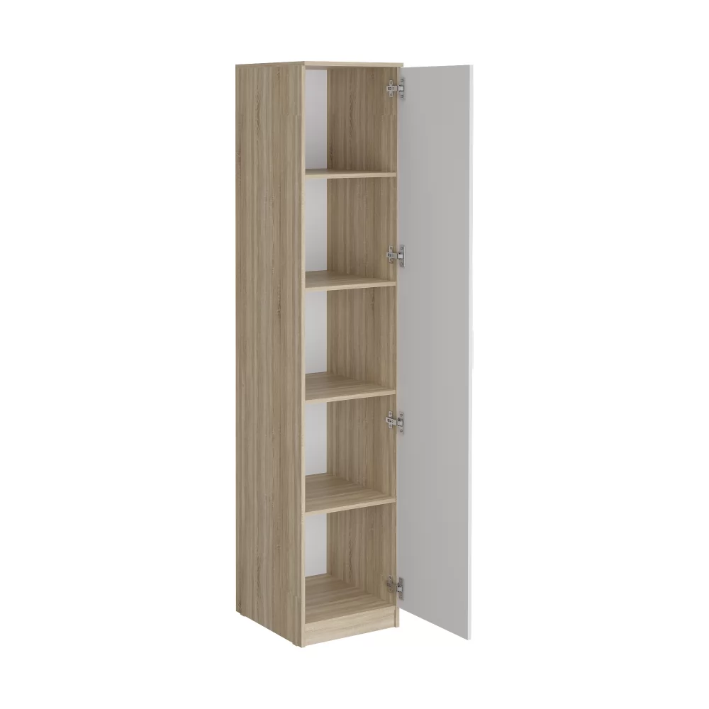 Универсальный пенал с полками и штангой - можно установить все полки и использовать для хозяйственных вещей,можно совместить - и удалив несколько верхних полок, применить штангу для вешалок с короткими вещами или же сделать полностью гардеробный пенал для длинных вещей на плечиках - уставив только верхнюю и нижнюю полку.