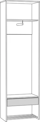 Шкаф для одежды Трувор 13.328.02 поможет создать приветливую и благоприятную атмосферу, которая с порога будет окутывать теплом. За двумя распашными дверьми находится выдвижная штанга для вешалок-плечиков с верхней одеждой, а антресольная полка пригодится для головных уборов и прочих аксессуаров. Нижняя трубчатая полка предназначена для размещения обуви, а небольшой выдвижной ящик пригодится для различных аксессуаров, косметики для обуви и прочих мелких предметов. Индустриальная мебель Трувор выполнена в стиле лофт.