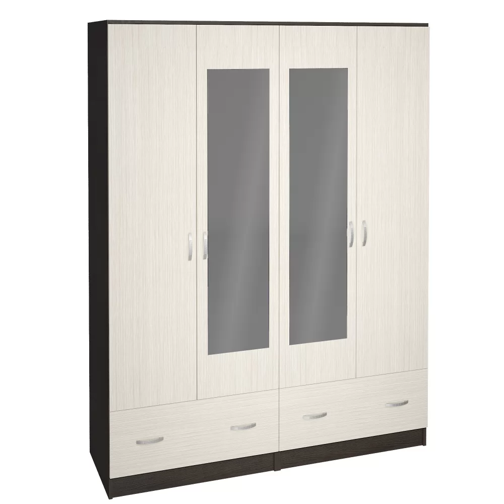 Шкаф ШК-4 станет элементом спальни Ронда или дополнит самостоятельный интерьер - Модель состоит из двух двустворчатых шкафов - Ручка пластик - Шкаф комплектуется горизонтальной штангой - Выдвижные ящики на роликовых направляющих - Зеркало 4 мм