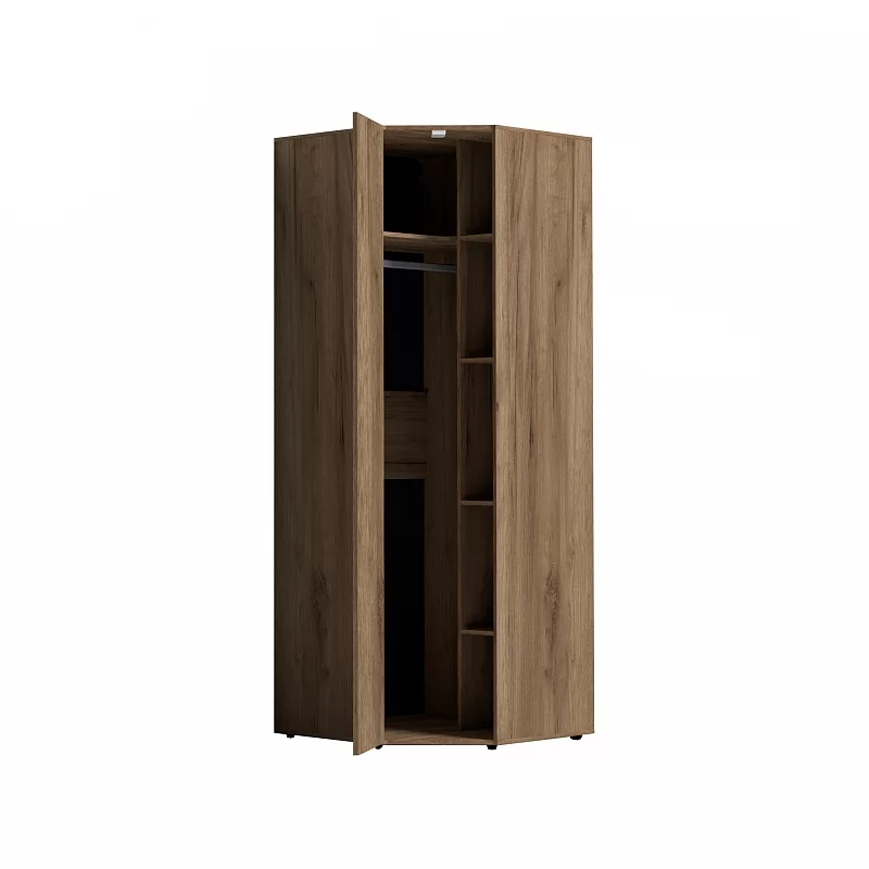 Отлично организовать пространство в маленькой спальне поможет угловой шкаф. Стационарная штанга длиной 814 мм и полноценный стеллаж для белья внутри способствуют аккуратной организации вещей. Гладкие фасады и натуральный декор шкафа привнесут в комнату особый уют и теплоту, а металлические ручки-скобки вместе с 2 мм кромкой ПВХ обеспечат высокую надежность изделия. Шкаф оснащен беспроводным светодиодным светильником, который включается при открывании двери. Это особенно удобно, если нужно найти в шкафу вещи, не потревожив близких. Легкая установка на магнитное крепление - не требует сверления, прокладывания провода, подключения к сети. Шкаф обязательно крепится к стене на подвесы, а компенсировать неровности пола можно, благодаря регулируемым опорам.