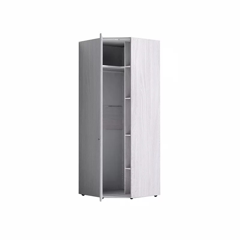 Отлично организовать пространство в маленькой спальне поможет угловой шкаф. Стационарная штанга длиной 819 мм и полноценный стеллаж для белья внутри способствуют аккуратной организации вещей. Угловой шкаф оснащен беспроводным светодиодным светильником, который включается при открывании двери. Это особенно удобно, если нужно найти в шкафу вещи, не потревожив близких. Легкая установка на магнитное крепление - не требует сверления, прокладывания провода, подключения к сети. Шкаф обязательно крепится к стене на подвесы, а компенсировать неровности пола можно, благодаря регулируемым опорам.