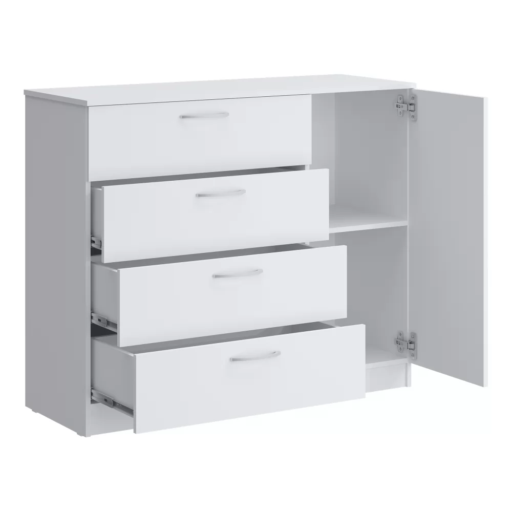 За счет дополнительного отсека с распашной дверкой функциональность комода расширена - можно разместить что-то более крупное.