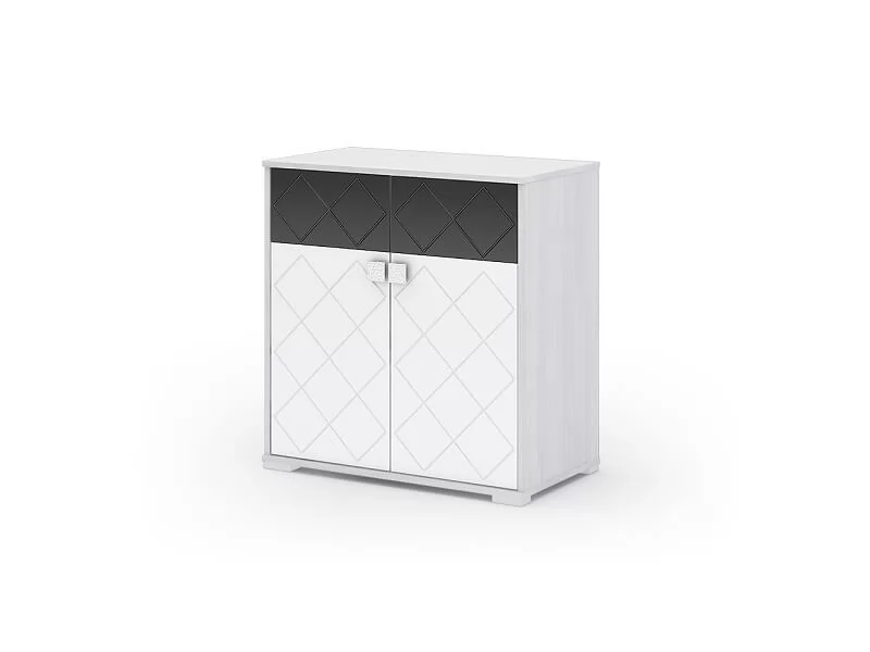 Комод КМ 021 состоит из 2-х открывающихся дверок и нескольких полочек внутри.