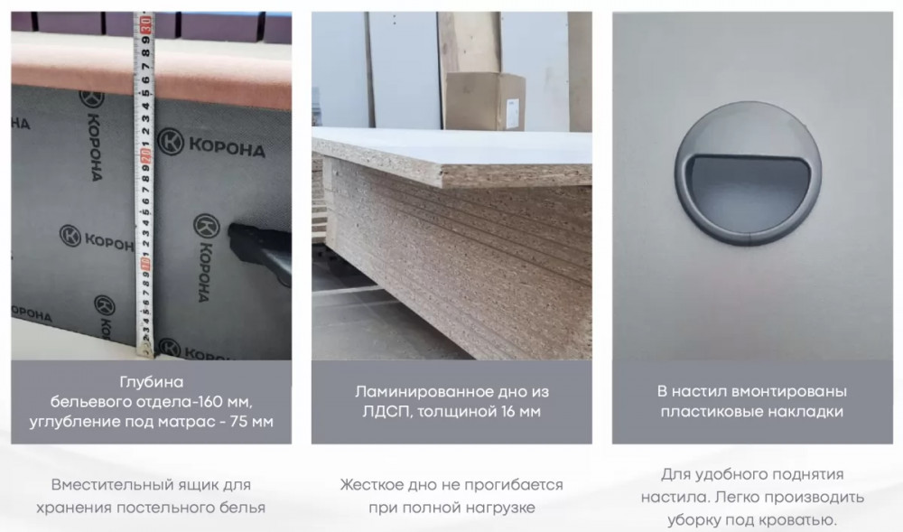 Опоры 130 мм создают над полом свободное пространство, что позволяет легко произвести уборку под кроватью используя робот-пылесос.