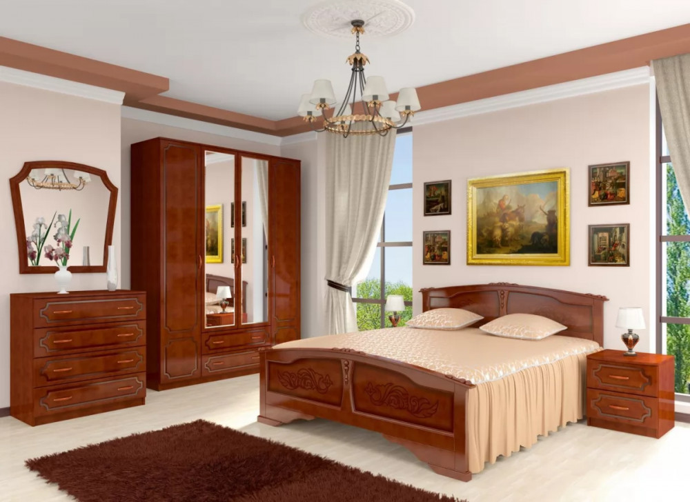 Ореховый оттенок - идеальный способ сделать свою спальню одновременно простой и элегантной. Лак не маскирует красоту древесного рисунка, а лишь подчеркивает ее, создавая идеальный ансамбль натуральности и технологической обработки.
