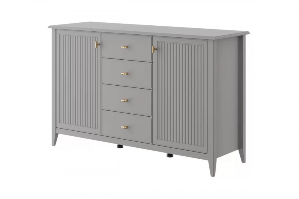 • Комод 4 ящика + 2 двери Никеа Серый шифер/Лак Антрацит