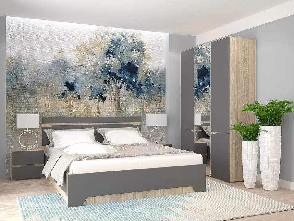 Спальный гарнитур с 3-х створчатым шкафом Анталия Сонома-Графит софт в Ноябрьске