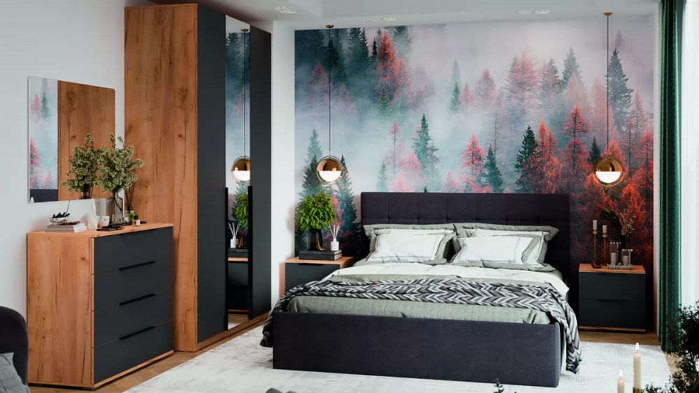 Спальня «Джоли» Дуб Крафт золотой, Графит матовый в Ноябрьске