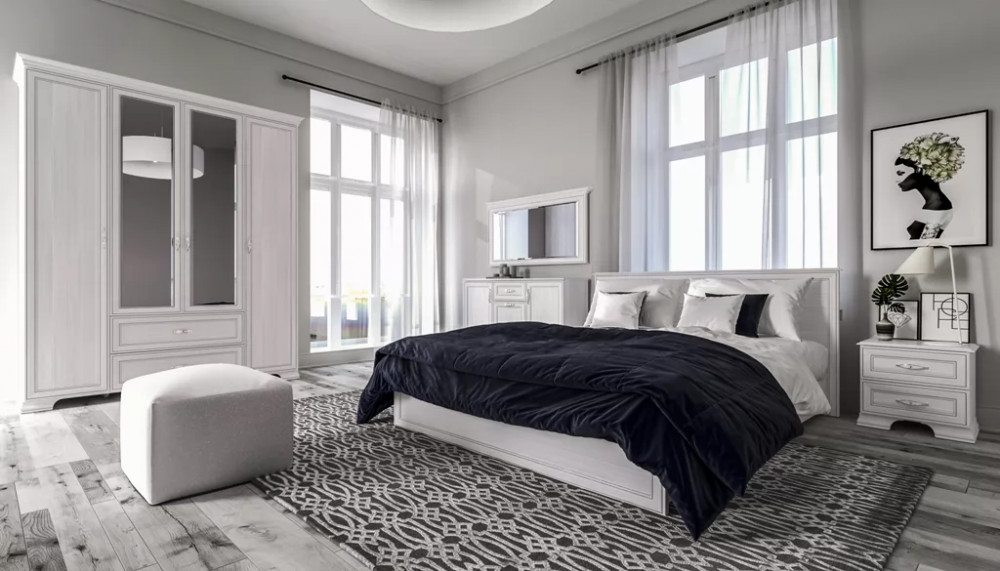 Спальня «Венеция» выполнена в классическом стиле и отлично впишется в любой интерьер. Регулируемые опоры. Петли с доводчиками на всех фасадах. Шариковые направляющие полного выдвижения. Кровати комплектуются ортопедическим основанием на ножках или с подъемным механизмом. Ручки металлические цвет – «Хром глянцевый» с белой вставкой.